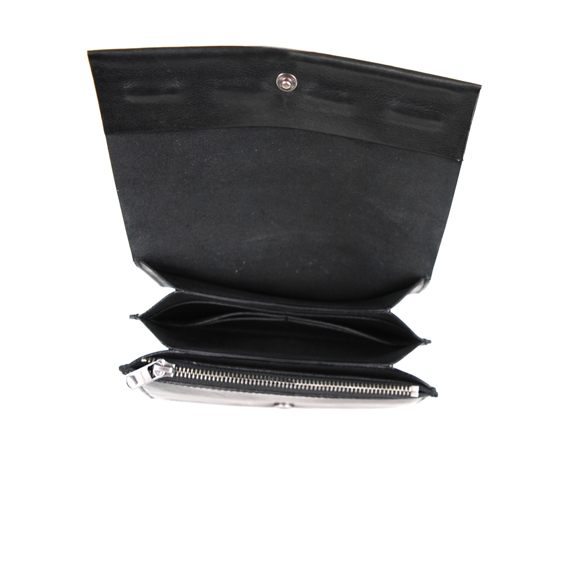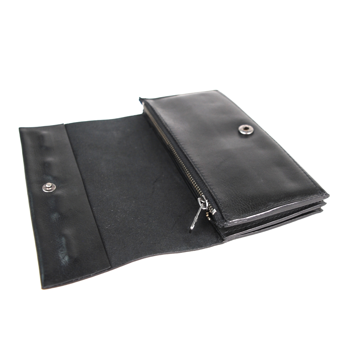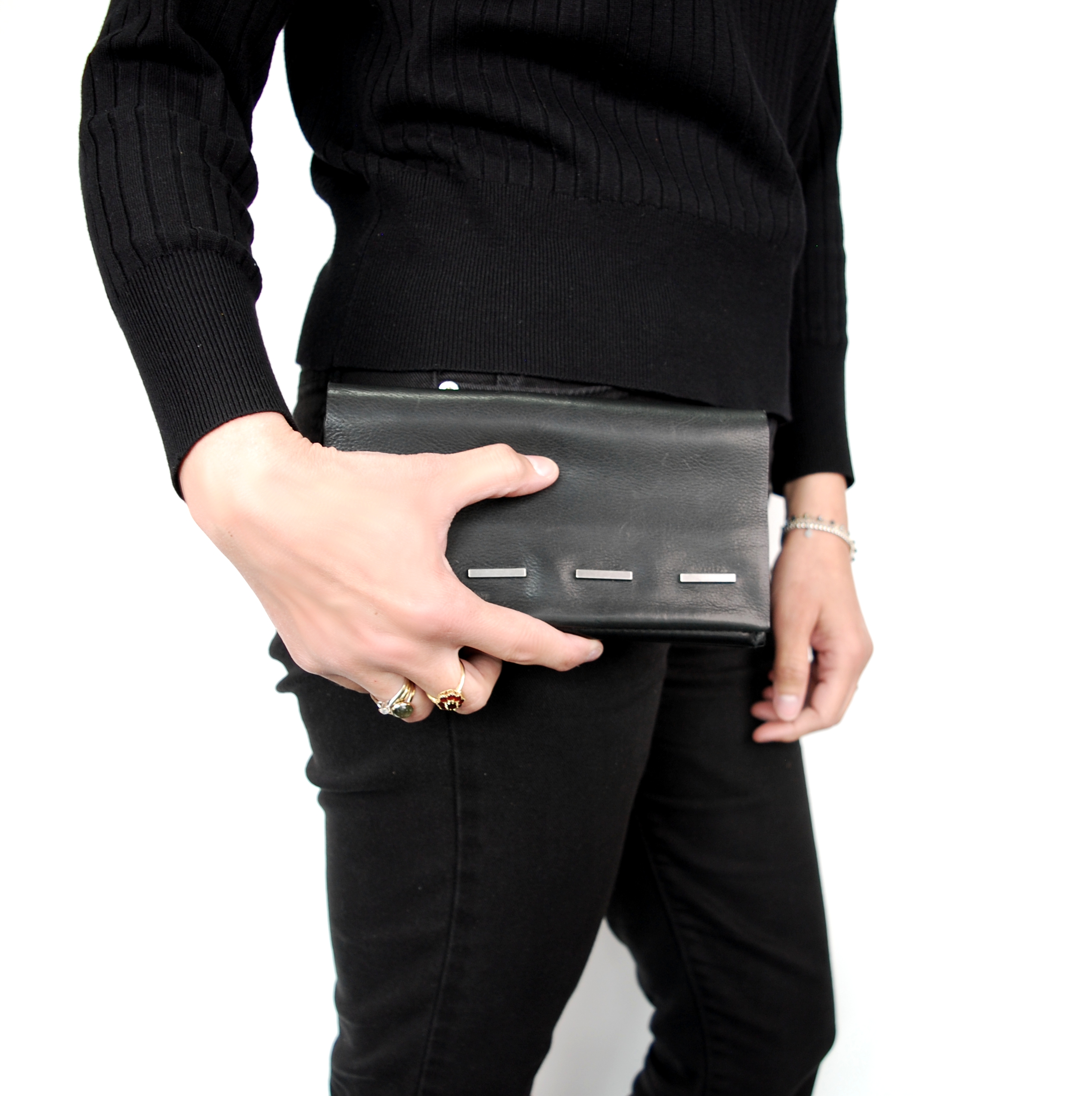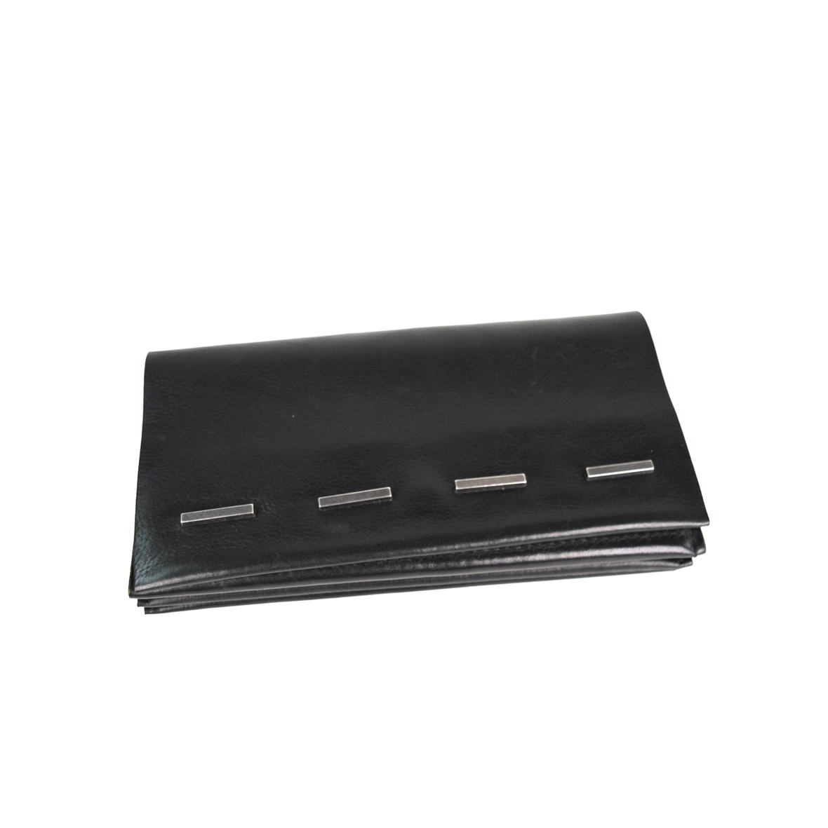 Borsello multifunzionale, utile come ampio portafoglio o elegante pochette in morbida e pregiata pelle, dotato di due comodi scomparti interni di cui uno zippato. Il dettaglio a borchie rettangolari su patta frontale lo rende adatto ad arricchire i tuoi outfit speciali.