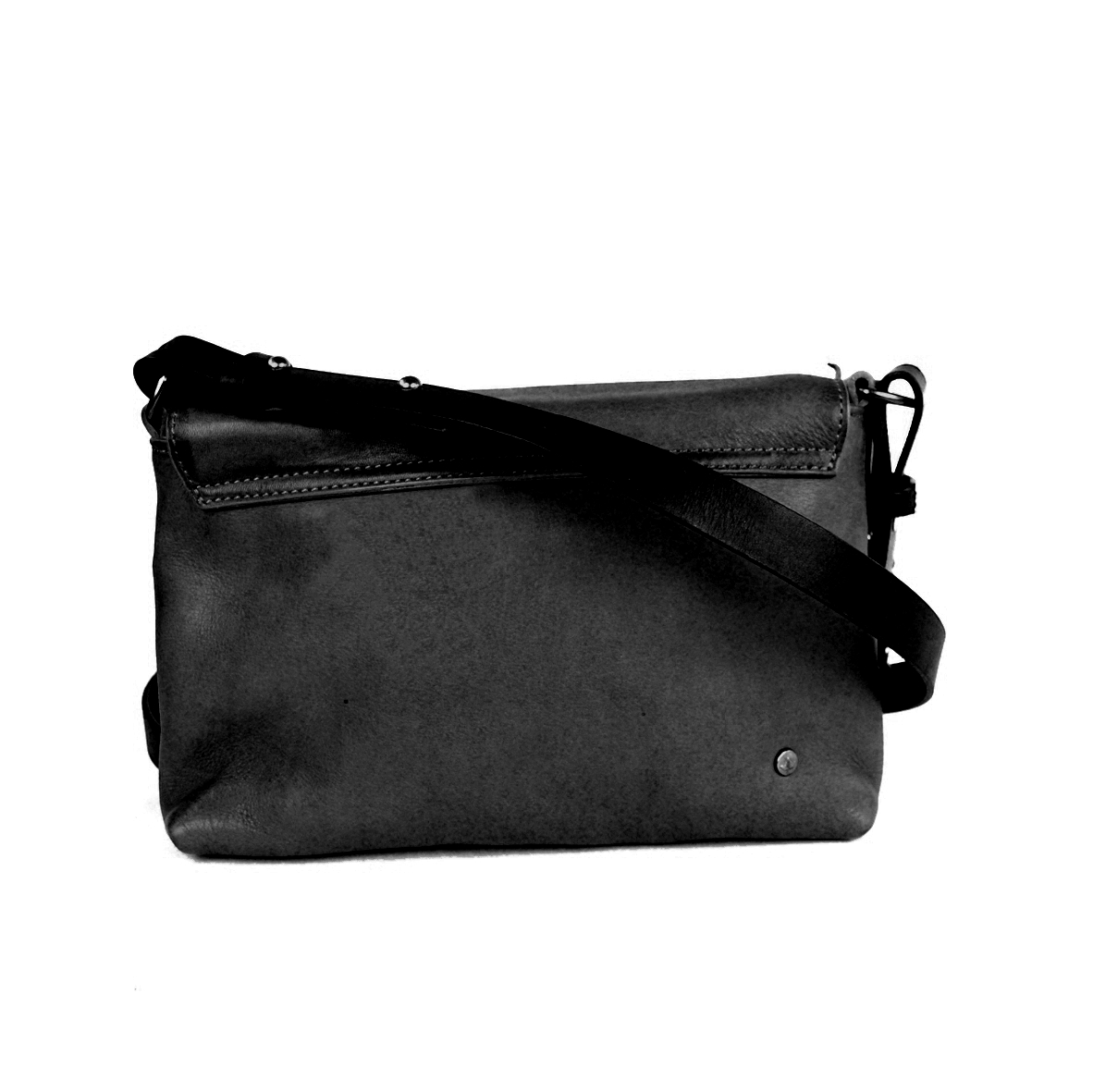 Borsa compatta chiusa con zip e patta, caratterizzata da decorazioni di borchiette rettangolari che conferiscono un look audace.
