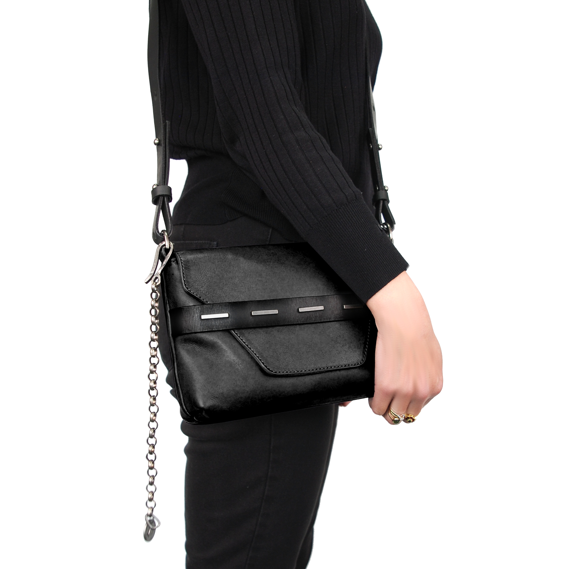 Perfetta day & night, è un accessorio che ben si abbina sia a look basici da giorno sia ad outfit più preziosi da sera. La tracolla è sottile ed elegante, l'interno è foderato e dotato di tasche multiuso.