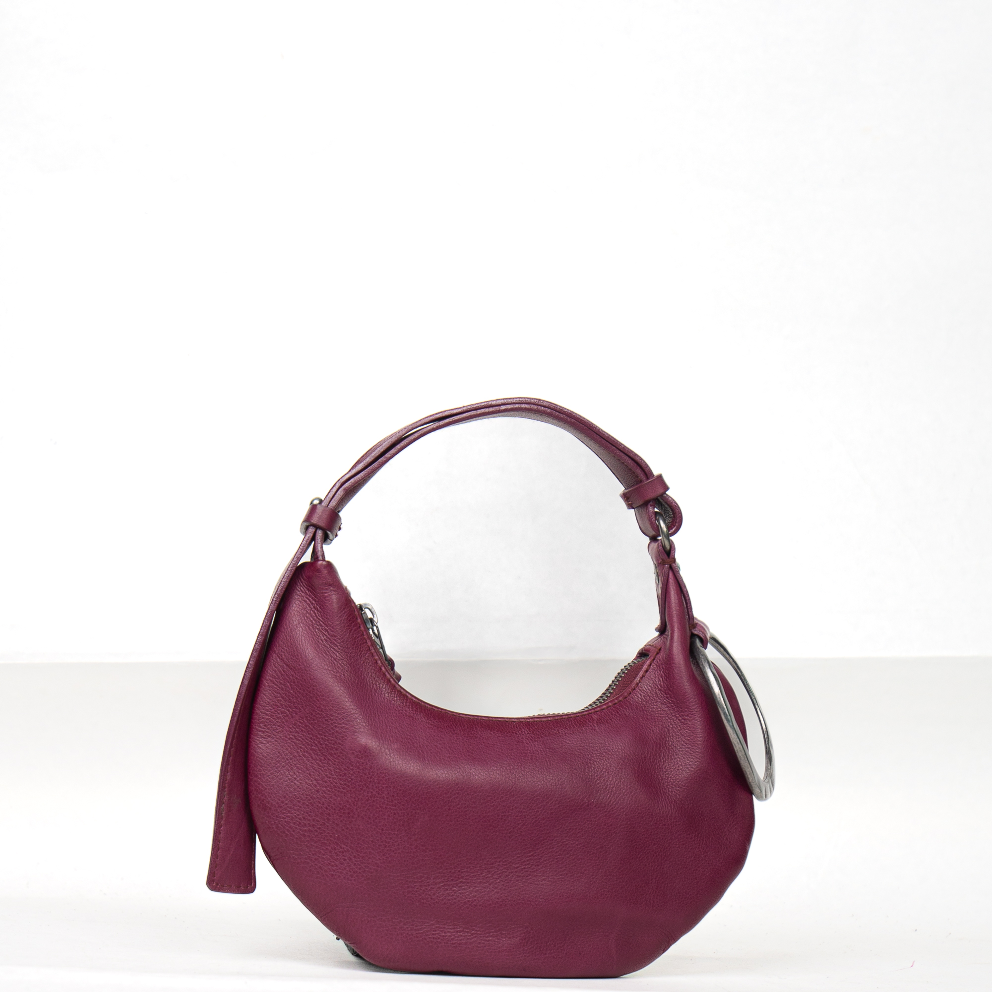 L'elemento di design che definisce la nostra linea Urban FW25/26 è la decorazione ad anello metallico . Questo dettaglio statement, applicato strategicamente all'attacco del manico, conferisce alla borsa la sua riconoscibile attitudine edgy e contemporanea, unendo lusso discreto e spirito metropolitano.