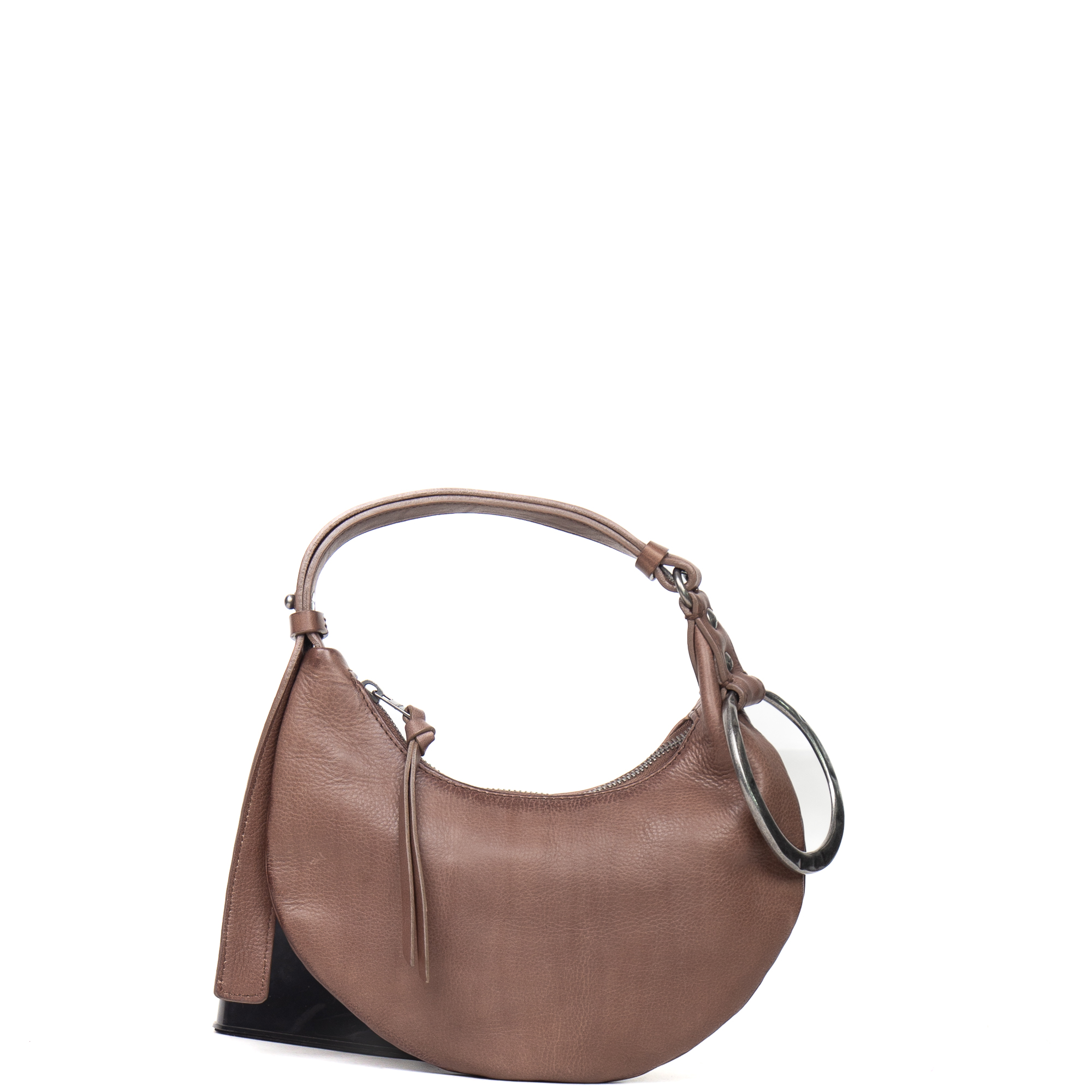L'elemento di design che definisce la nostra linea Urban FW25/26 è la decorazione ad anello metallico . Questo dettaglio statement, applicato strategicamente all'attacco del manico, conferisce alla borsa la sua riconoscibile attitudine edgy e contemporanea, unendo lusso discreto e spirito metropolitano.