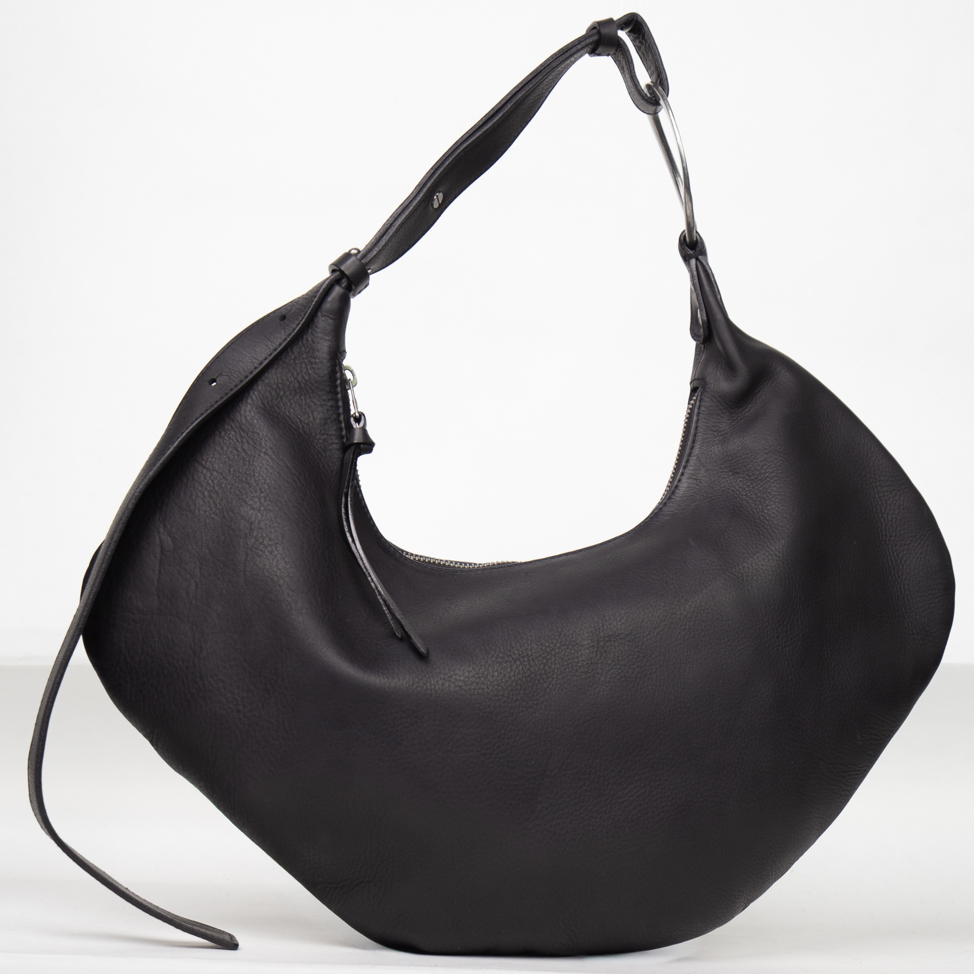 Questa borsa a spalla, dalla silhouette ampia e avvolgente a mezzaluna, è realizzata in pregiata Cow Skipper Leather, rendendola un accessorio versatile e di grande impatto. Incarna un'eleganza non convenzionale, portabile e immediatamente riconoscibile, perfetta per un uso quotidiano che non rinuncia allo stile.