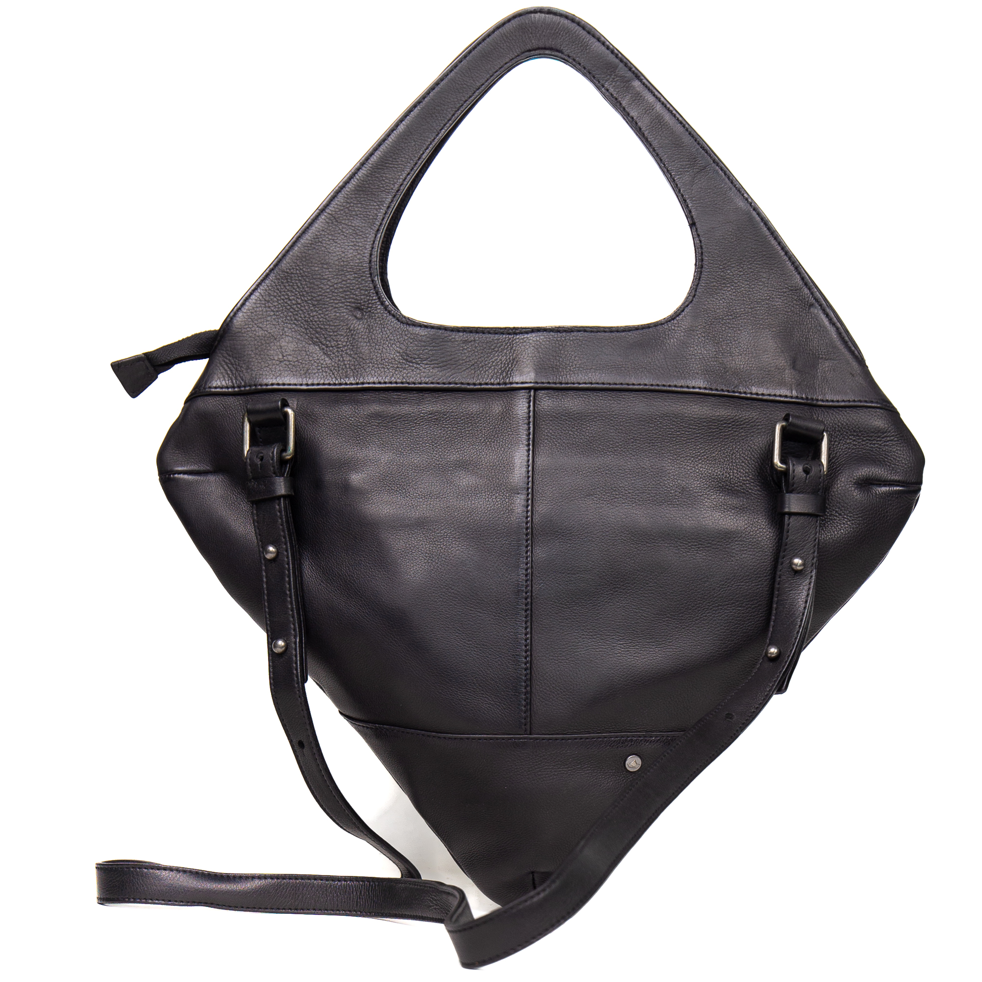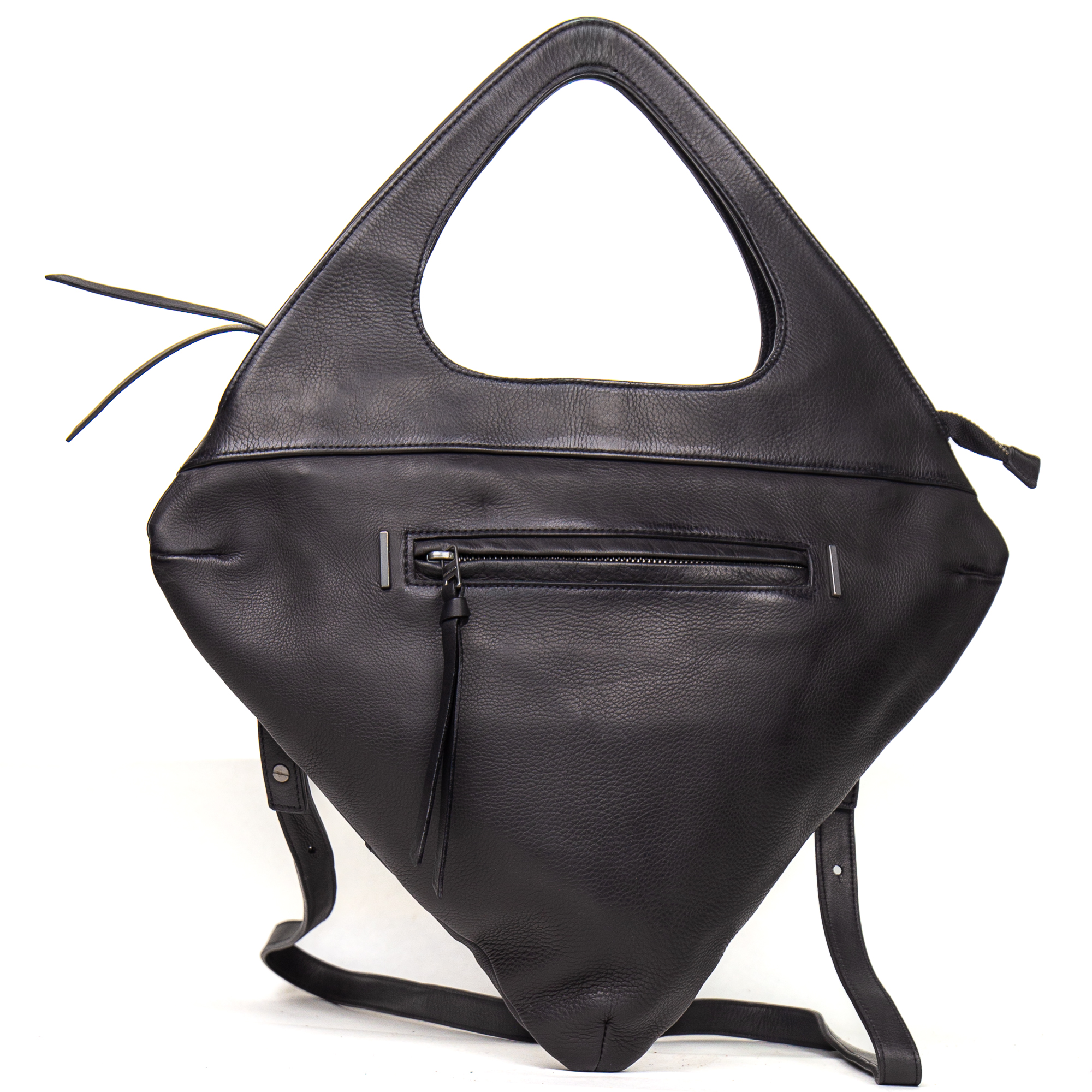 una borsa dalla silhouette insolita e affascinante. Realizzata in pregiata Cow Skipper Leather, si distingue per la sua costruzione geometrica che ricorda un design a diamante o trapezoidale, unendo morbidezza e struttura in un equilibrio unico.