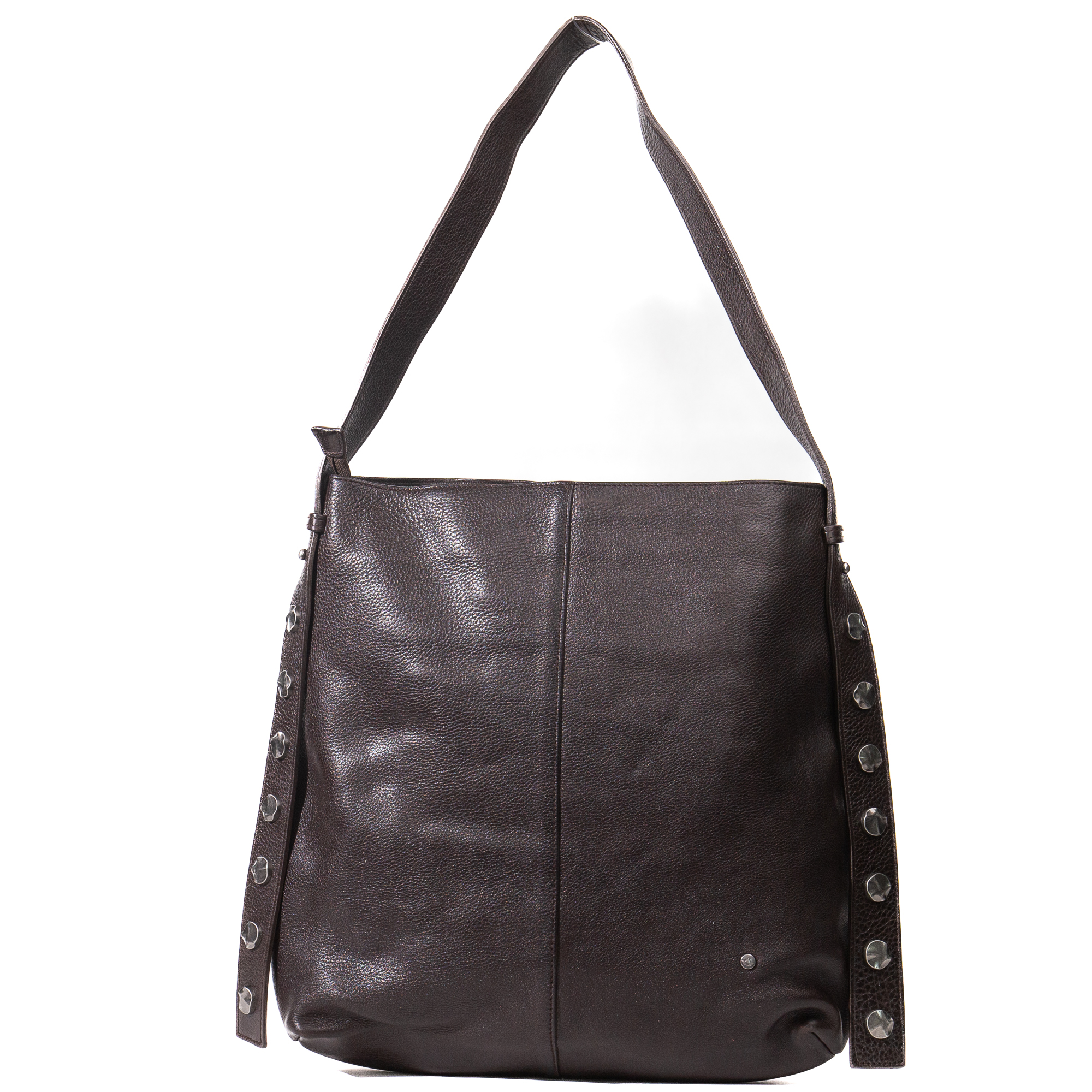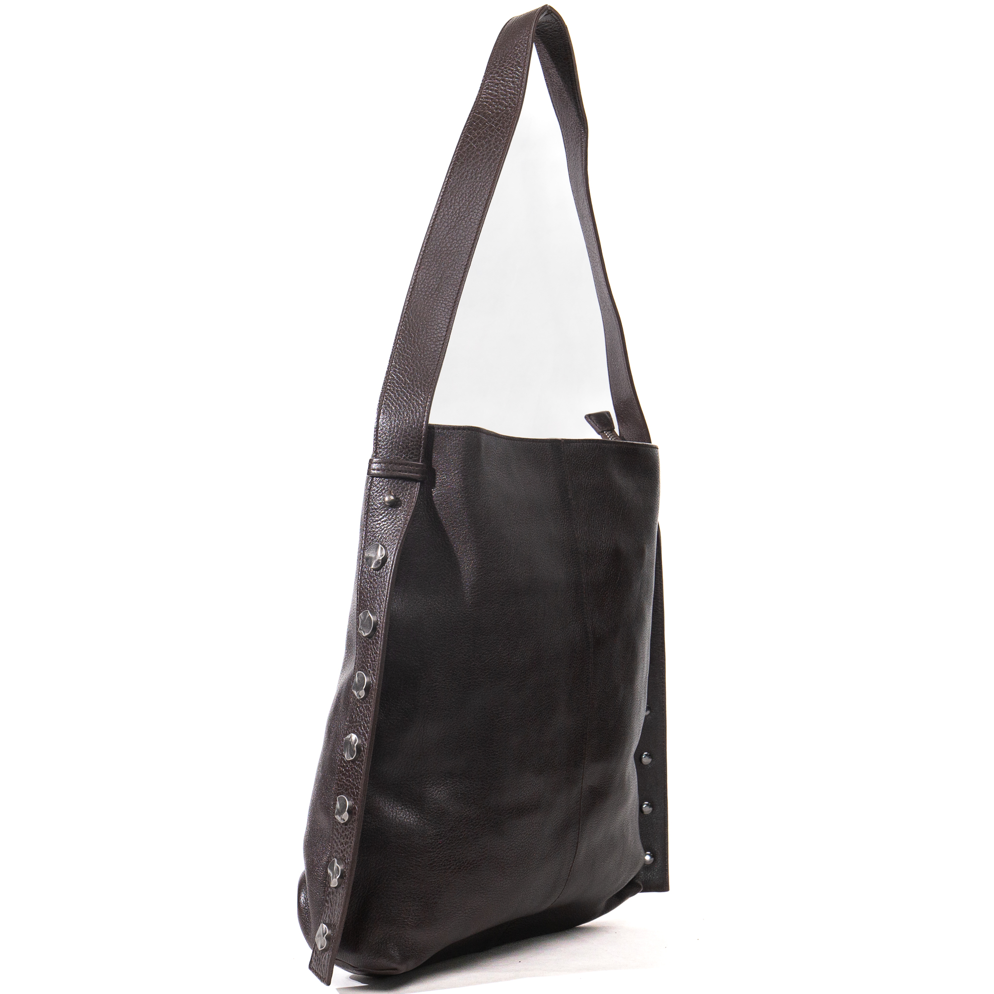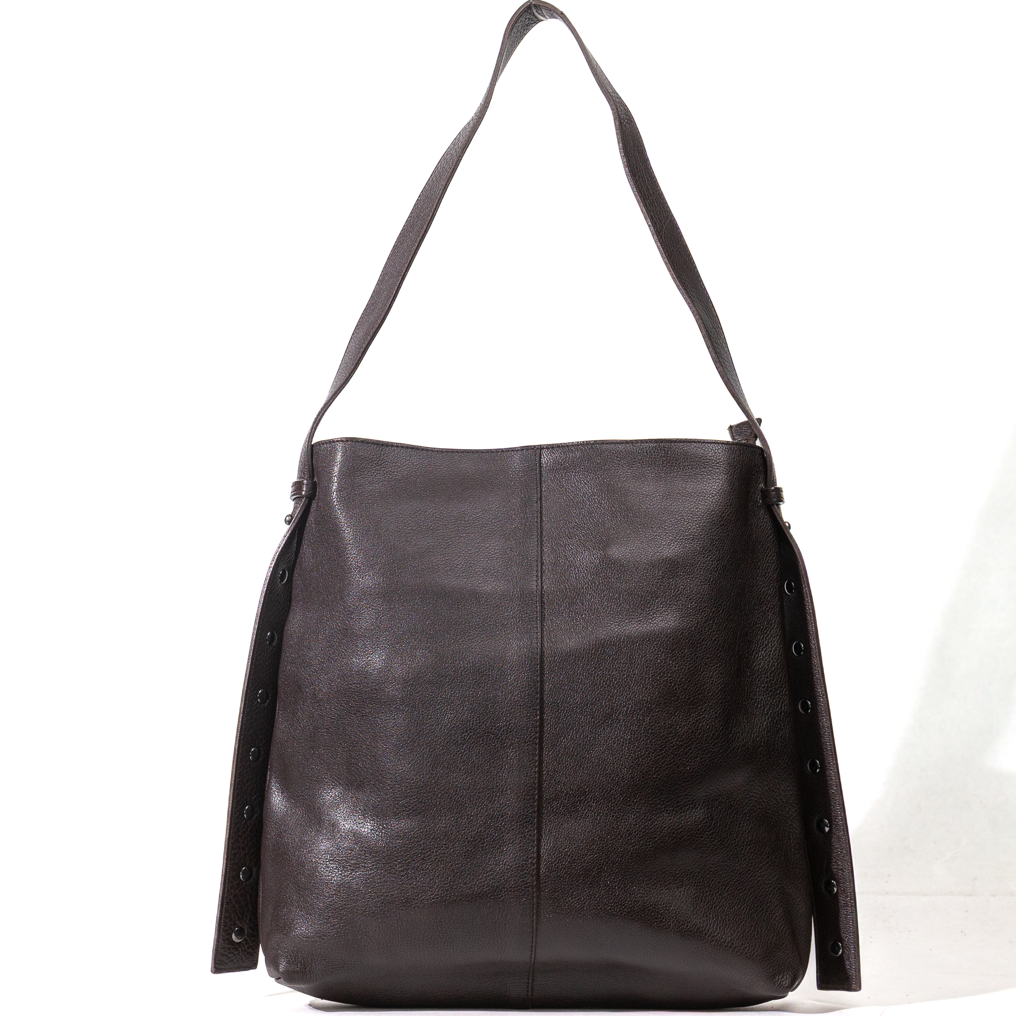 Questa maxi-borsa di REHARD FW25/26 è un accessorio chiave per la stagione, combinando dimensioni generose con un design minimalista ed estremamente funzionale. La silhouette verticale e pulita è definita da lunghe cinghie in pelle che creano un forte impatto visivo.