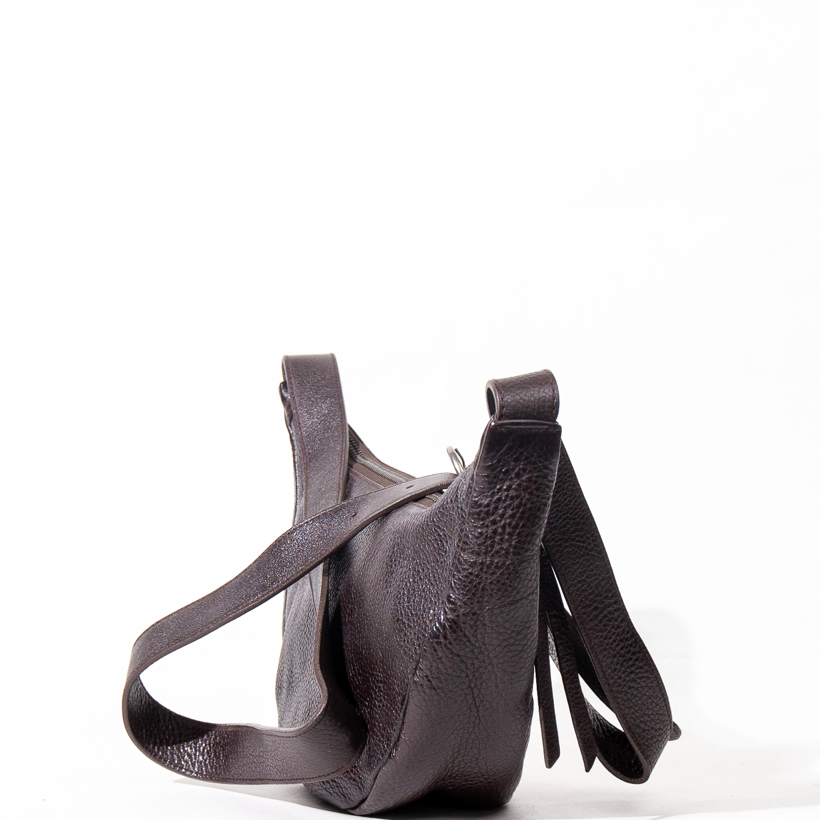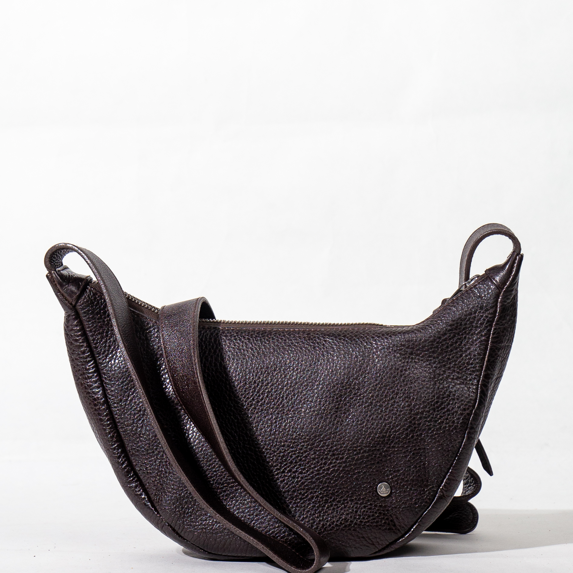 La borsa è realizzata in pelle distintiva per la sua morbidezza e la raffinata lavorazione . La silhouette a mezzaluna , sottile ma capiente, si adatta perfettamente al corpo.