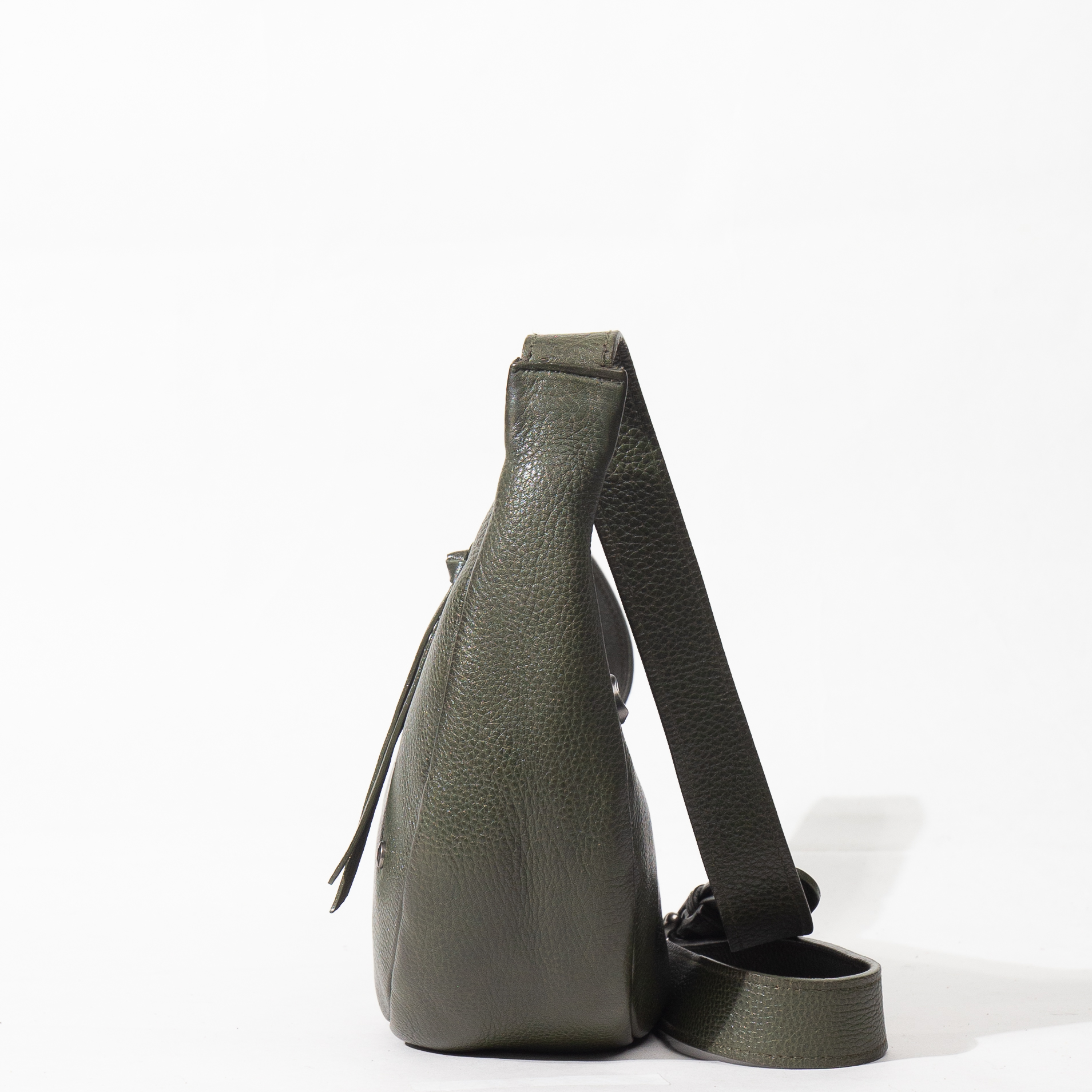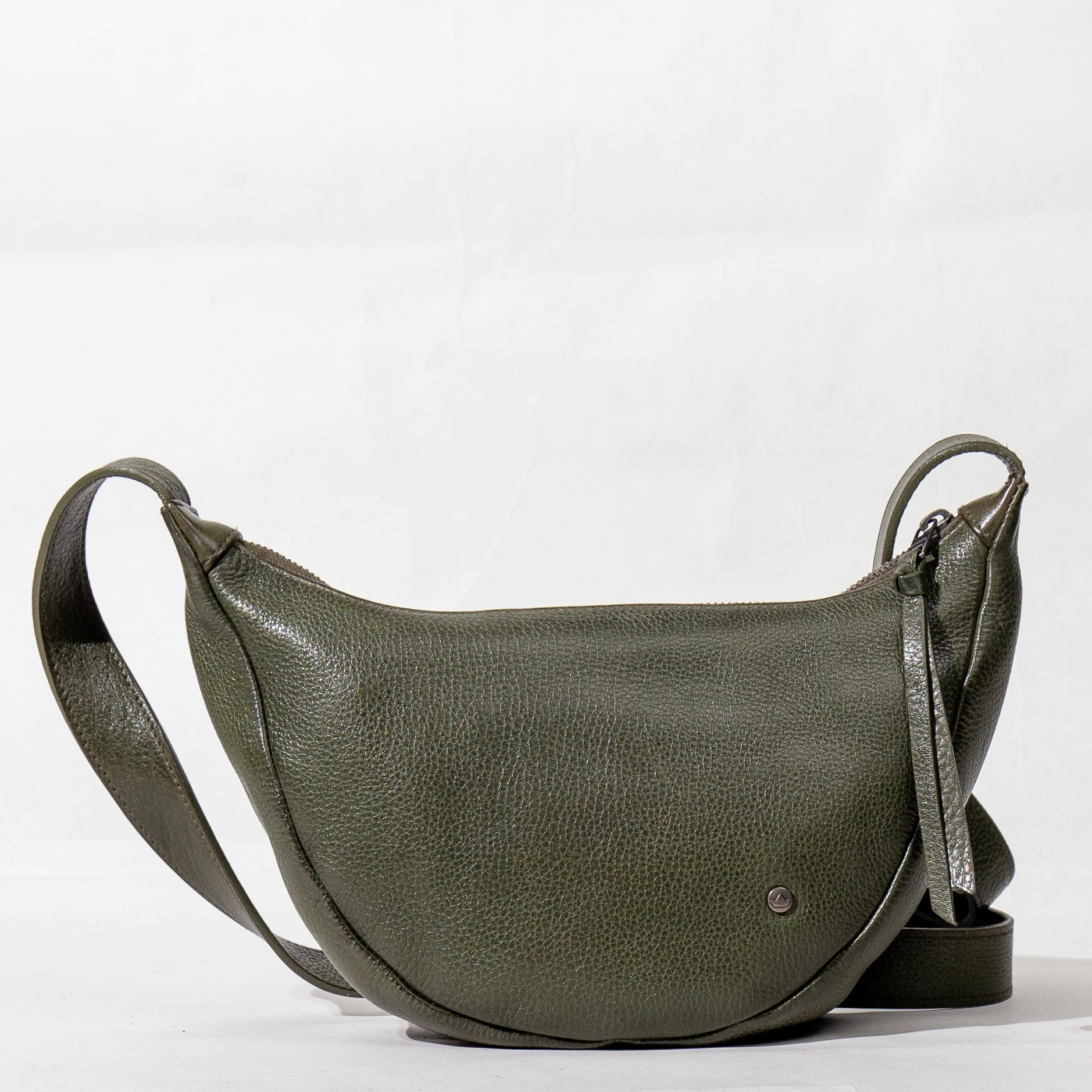 La borsa è realizzata in pelle distintiva per la sua morbidezza e la raffinata lavorazione . La silhouette a mezzaluna , sottile ma capiente, si adatta perfettamente al corpo.