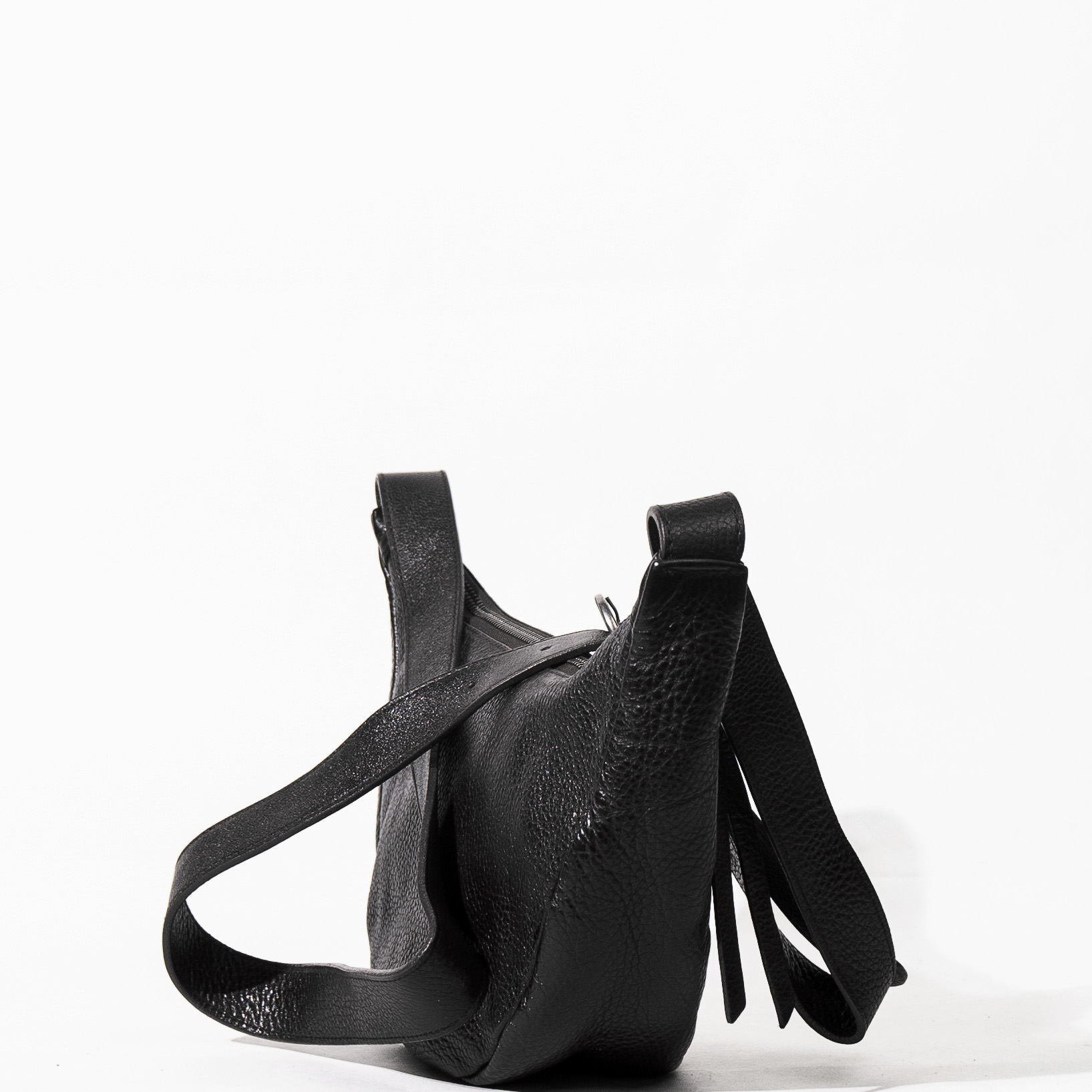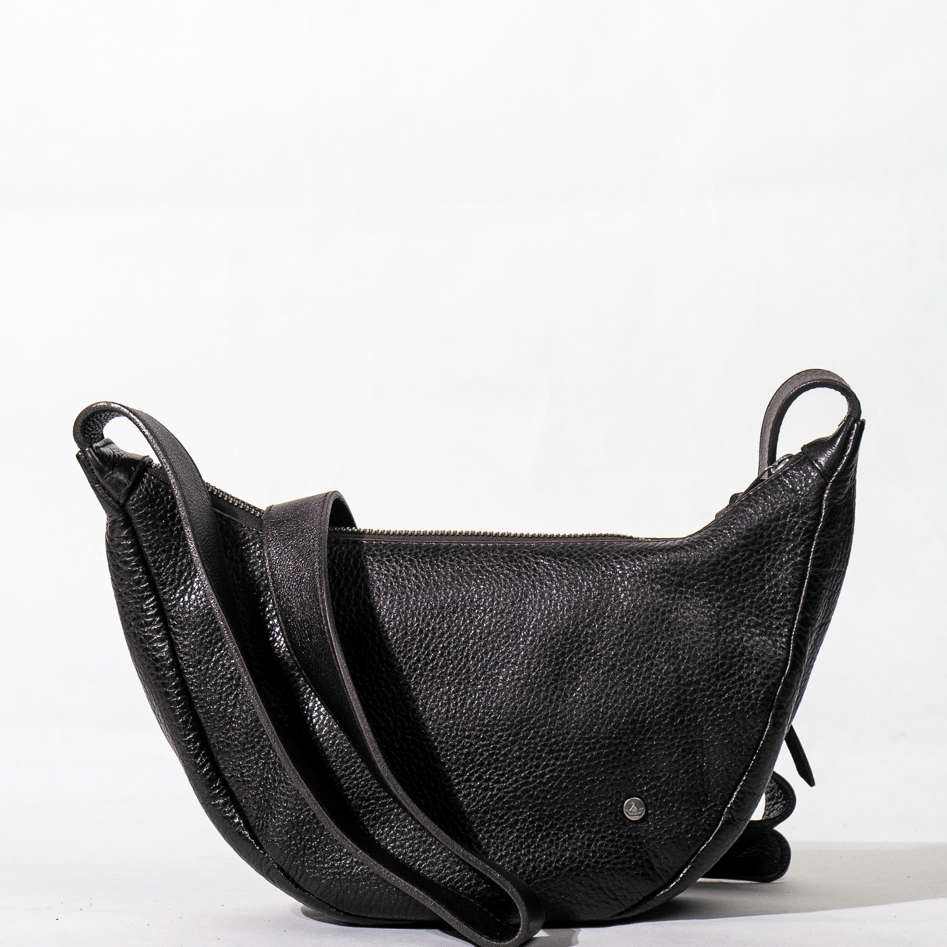 La borsa è realizzata in pelle distintiva per la sua morbidezza e la raffinata lavorazione . La silhouette a mezzaluna , sottile ma capiente, si adatta perfettamente al corpo.