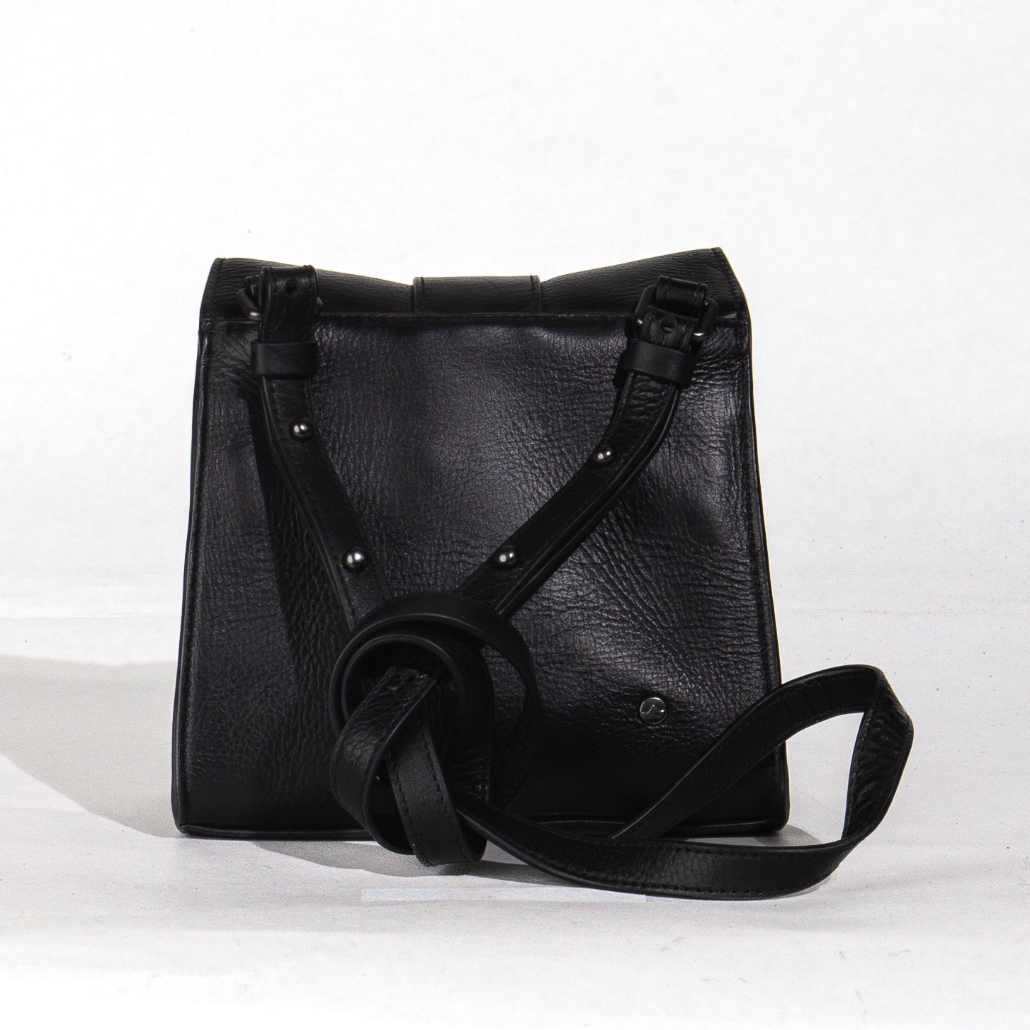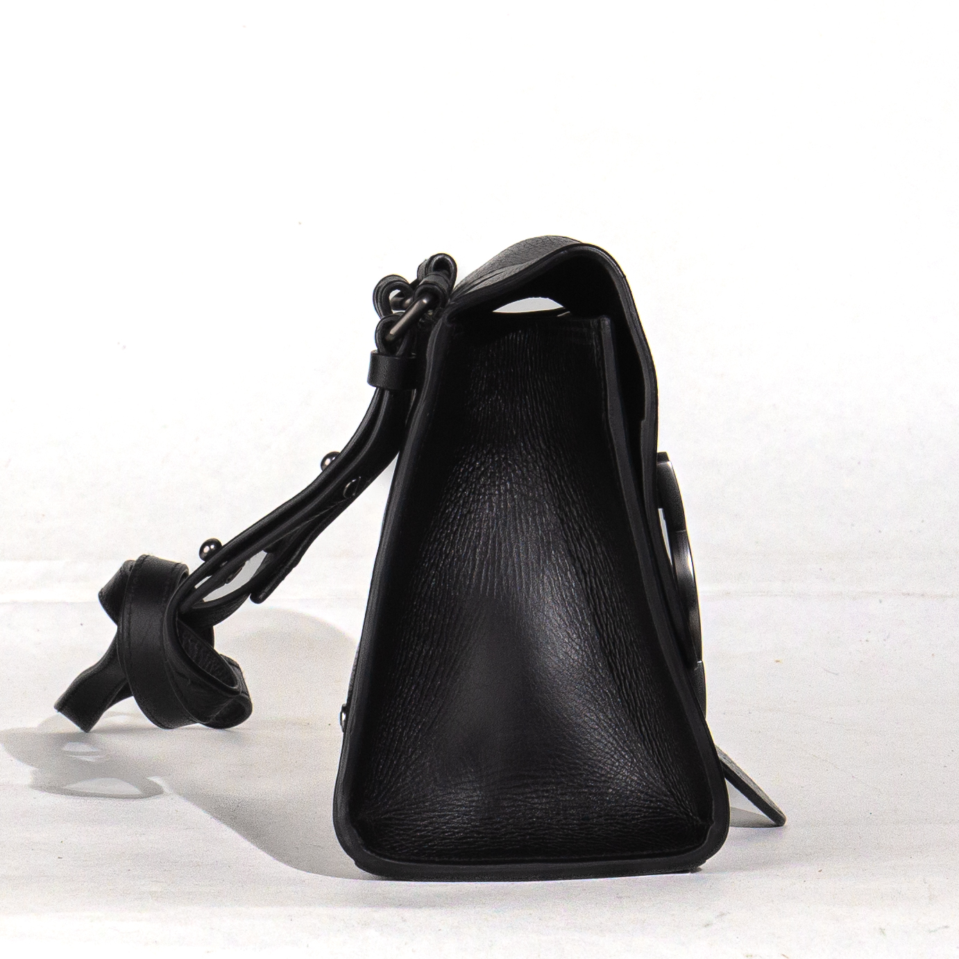 Questa borsa a tracolla compatta è l'accessorio chiave della famiglia BUCKLE ANTIC per la collezione REHARD FW25/26. Si distingue immediatamente per la fibbia centrale metallica dal design scultoreo e anticato, che funge da punto focale e da chiusura